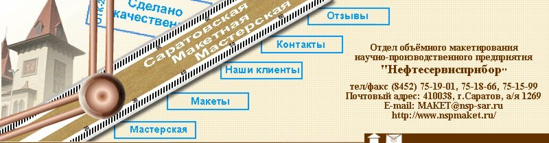 | Copyright © 2005 Саратовская макетная мастерская. Все права зарезервированы. Никакая часть печатных и электронных материалов не может быть воспроизведена в каком бы то ни было виде без письменного согласия владельцев авторского права. | |